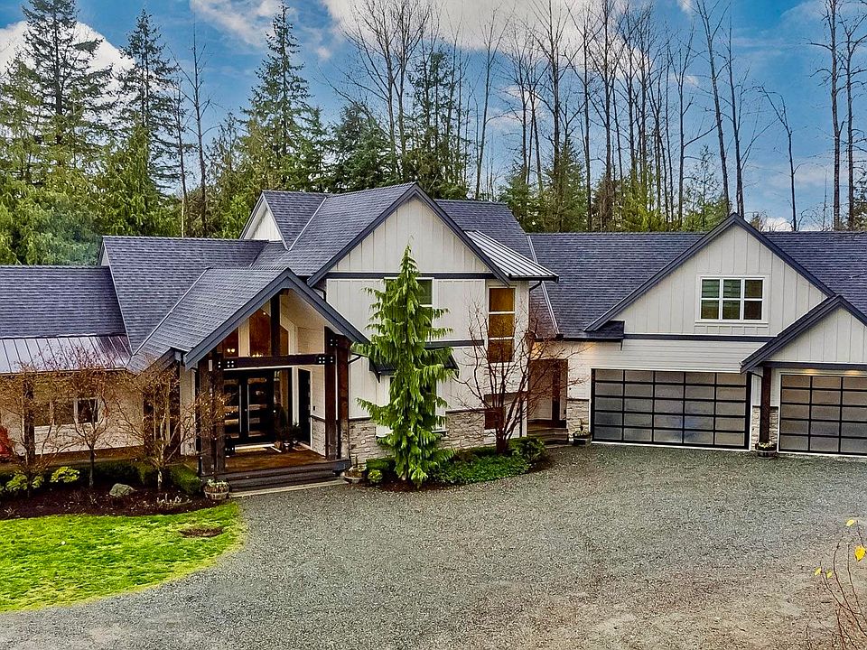 Experience elevated luxury on 3.76 private gated acres in North Langley. This custom 2-storey with basement features soaring vaulted ceilings, a gourmet chef’s kitchen with pantry, wet bar with wine cooler, built in coffee machine and all high end Thermador appliances quartz and hardwood.Refined main-floor living spaces including formal living, family, office, and hobby/study rooms. The upper level hosts a lavish primary retreat with soaker tub, double-sided fireplace, plus 3 spacious bedrooms, 2 baths, and a grand games room.The lower level offers an elegant 1-bed suite with den and media room. Finished with a triple garage, expansive heated wraparound ultimate entertainment deck-BONUS 3-bed/2-bath modular home with fenced yard and private driveway.Container workshop and detached carport.