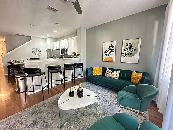 Welcome to Kissimmee's beautiful furnished townhome, ready for you to move in now! This 3-bedroom, 3-bathroom townhouse boasts a modern upgraded kitchen with quartz countertops, perfect for cooking and entertaining. The living areas feature a mix of carpet and tile, as well as wood laminate flooring, adding a touch of elegance to the space. Enjoy the convenience of spacious closets for all your storage needs. Located in a gated community, residents can also take advantage of the community pool for relaxation and leisure. Don't miss out on this opportunity to call this stunning townhouse your new home.