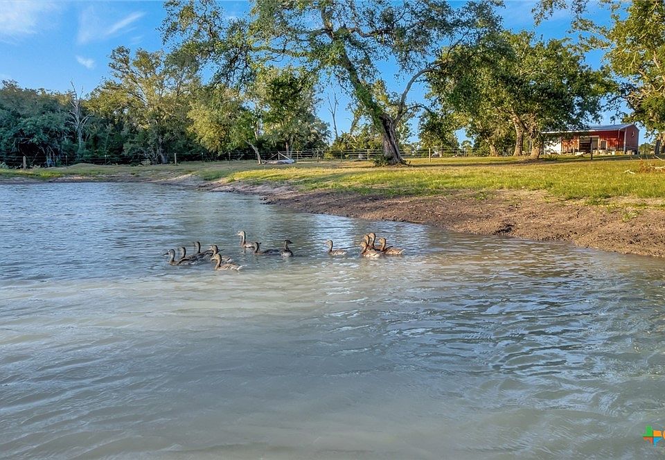 Discover your own piece of Texas paradise on this extraordinary 179.97-acre ranch sanctuary featuring an impressive 4,708+/- feet of Navidad River frontage. This remarkable property seamlessly blends modern comfort w/ authentic ranch living, offering endless possibilities for recreation, investment or your dream rural lifestyle. At the heart of this stunning property sits a 2023 Solitaire manufactured home w/ 1.100 sq ft. of comfortable living space, including 2 bedrooms/2 bathrooms, perfectly positioned to overlook a serene 1.5-acre pond where a family of whistling ducks has made their home. The property boasts exceptional infrastructure with a galvanized 3-bay equipment barn, a 30x60 barn equipped with a 14 ft. roll-up door & 3- 10 ft. roll-up doors, a convenient lean-to, kitchen area & a men's bathroom w/ shower & ladies' restroom. This ranch is a cattleman's dream, featuring excellent native grasses, fertile river bottom pastures and new fencing on two sides. The ranch is blessed w/ mature hardwoods, including majestic oak & pecan trees that create natural shade & windbreaks throughout the property. A bulldozed half-mile path provides easy access to the extensive river frontage, making this waterfront truly accessible & enjoyable. Wildlife enthusiasts will delight in the abundant populations of whitetail deer, wild hogs, turkeys, doves, multiple species of ducks, coyotes & bobcats that call this diverse habitat home. The property has approximately 1,871 ft. of CO RD 284 frontage. Whether you are seeking a cattle ranch, premium, hunting retreat, family compound or investment property, this remarkable ranch offers the perfect combination of outstanding infrastructure & unmatched natural beauty that defines the best of rural Texas. Call today for more information on this stunning property!