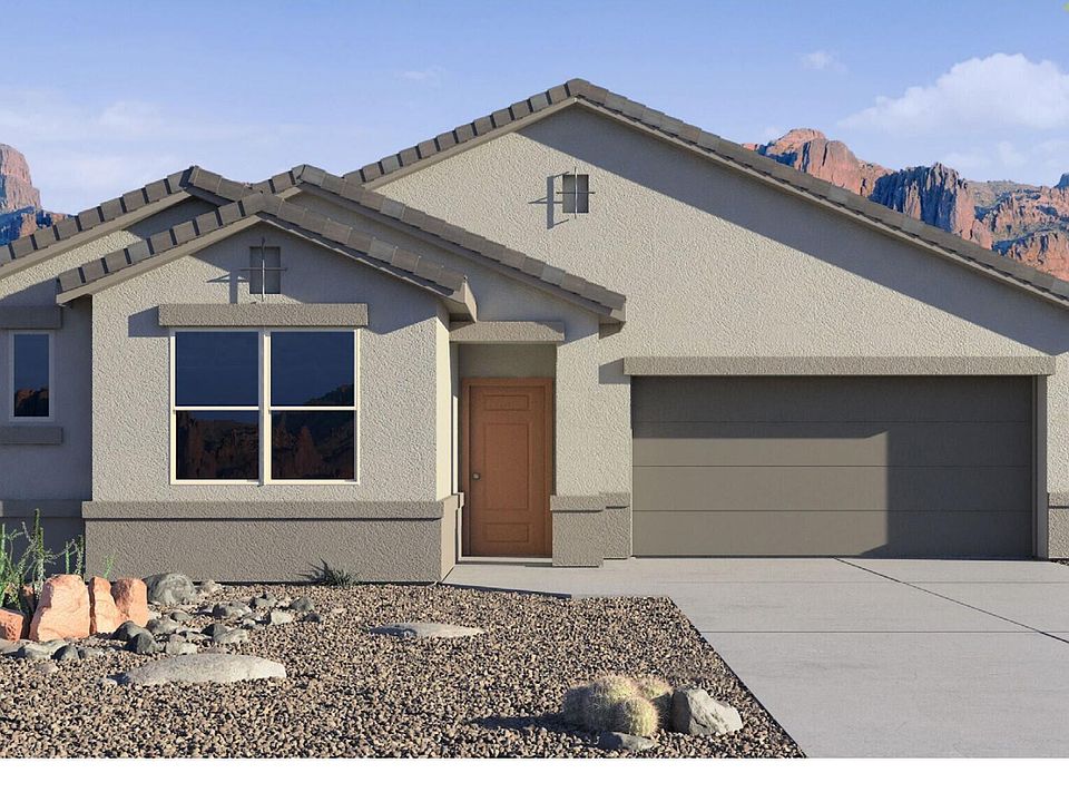 Welcome to Radiance at Superstition Vistas, a brand new master planned community located on the border where Mesa meets Apache Junction. This is a rare opportunity for optimal living - to have the convenience of City living while enjoying the breathtaking Superstition mountains! Small town feel meets modern amenities at its best! Under construction now are the amazing amenities that include a resort-like pool area, 11,000 sq ft clubhouse with fitness center, splash pad & park! walking trails and parks throughout the community as well! The FARGO-1757 sq ft, 4 bed/2 bath adorable, energy efficient single level home in which you will find tile in all common areas, 9 foot ceilings & on trend extra bright white walls. The kitchen has gorgeous maple cabinets, granite countertops & large island