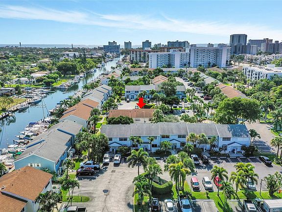 Updated 2/2.5-Bath Townhome a Community—1.5 Miles from the Beach! Enjoy coastal living in this bright open layout with porcelain floors, modern finishes, plantation shutters, French doors, newer AC and a private fenced patio. Upstairs offers a full-size washer/dryer& attic storage; In addition to the storage under the stairs. Park right in front of your door with 2 assigned spaces + guest parking. Community features pool + optional dock space with no fixed bridges to the ocean via the Hillsboro Inlet. Dock ownership is separate, with priority given to Sun Harbor owners to rent or purchase. Dock will be available early Nov 2025 for 36 ft long boat (10 ft & 6 inches wide). Low $218 monthly fee - covers water, sewer, trash & landscaping. Eligible for FHA & No special assessments!