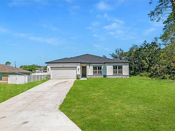 Welcome home! Absolutely beautiful BRAND-NEW construction 4-bedroom 3-bathroom home in the sought after Marion Oaks Community. At first impression you will notice the lovely, stacked stone accent finish. Once inside you are greeted by the seamlessly Expansive 9' 4 " Ceiling throughout the entire home. The main living area is centered around the Living Room with stunning 8' triple panel sliding glass door that overlooks the covered lanai which perfectly integrates the indoor/outdoor living space. The kitchen showcases Dolce White Quartz countertops, striking Herringbone subway tile backsplash, Samsung stainless steel appliance suite (3 Year Warranty), 42'' upper cabinets, and entertaining island. Owner's Suite features trey ceiling, oversized dual sink vanity, tastefully designed shower with glass enclosure, and his & hers walk-in closets. All guest bedrooms are well sized with ample closet space. The Guest Suite had a private en-suite bathroom making it perfect for a JR. or In-Law Suite. Both Guest bathrooms feature tub/shower combo with floor to ceiling tile. Spacious Laundry room with an additional linen closet for added storage, plus the washer and dryer are included in the sale! This home is the perfect blend of impeccable Craftsmanship with modern comforts making it the perfect place to call home. Don’t forget about our Builder Incentive programs including our preferred lender program with up to 1% of the loan value contributed towards closing cost. Tour this home today before it’s SOLD!