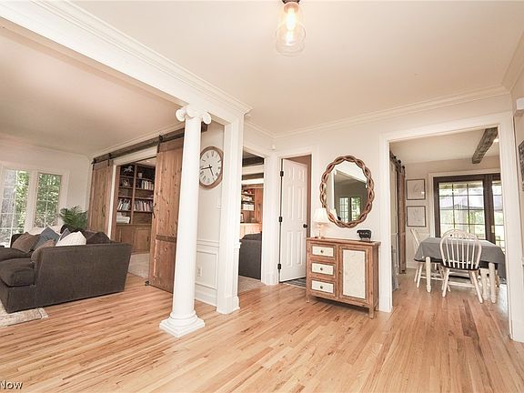Welcome to 2699 Walnut Ridge Rd. This elegant 4 berm, 3.5 bathroom colonial sits on 2+ acres in Bath. Nestled among tall trees and sitting back from the road, this this updated home is exactly what you’ve been searching for. A circular drive leads to the front porch with large pillars. As you enter the front door, you’re welcomed by the large foyer complete with crown molding, wainscoting and beautiful hardwood flooring. The open floor plan allows for easy entertaining. Friends and family will love the updated farmhouse style kitchen with quartz counters, abundant white cabinetry, stainless steel appliances, large farmhouse sink, tile backsplash, wood floor and beamed ceiling. A brick fireplace flanked with bookcases accent the first floor family room. A fireplace adds a special touch to the large master bedroom with updated bath and two walk-in closets. There are three additional bedrooms and two more full baths. Recently partially finished basement gives additional living space and p