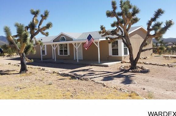 Lovely 3 bedroom, 2 bath home on 1.17 acre is a work in progress. A corner lot in Unit 7 with Panoramic Views all around. Circle drive with Front Covered Patio. Back Patio with view of Fenced Garden Area. Split floor plan has a nice Master Suite with walk in shower and walk in closet. Ceiling Fans and Skylights add to the detail of this home. Family Room/Den has wood burning Fireplace and Built in Window Seats with storage. Casual Dining off the Kitchen. Large underground water tank for Water Haul or Water Delivery. Bring your Tool and Imagination to get started on your dream home. Enjoy the Sunsets as the Grand Wash Cliffs change Color. Near Lake Mead Launch Ramp, Hiking and Quad Trails. Clubhouse Available with Sparkling Pool, Tennis Court and more.