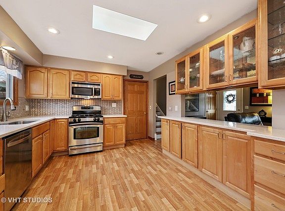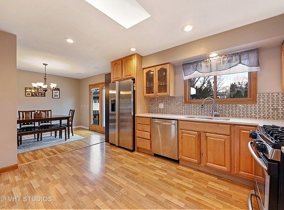 This beautifully updated split level offers so much inside and out! Situated in WHEATON SCHOOL BOUNDARIES this home has an open floor plan concept with Kitchen open to both Living and Dining Room. The totally remodeled Kitchen boasts maple cabinetry, quartz tops, trendy backsplash and stainless steel appliances. Other features are: hardwood floors, fireplace in Living Room flanked by built-in cabinetry, remodeled Baths, and lower level Family Room with built-in cabinetry. Outdoor fun awaits with a completely fenced in yard, playset, expansive deck and patio area. Great location close to Prairie Path walking trail, Lincoln Marsh, parks, and Wheaton Schools!!!