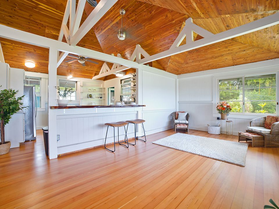Welcome to this newly renovated plantation-style gem, where modern comfort meets island charm! Set on nearly an acre of partially cleared, beautifully landscaped land, this stunning home offers breathtaking ocean views and all the space you need to enjoy the Hawaiian lifestyle. This property also has a Mac Nut Orchard!!