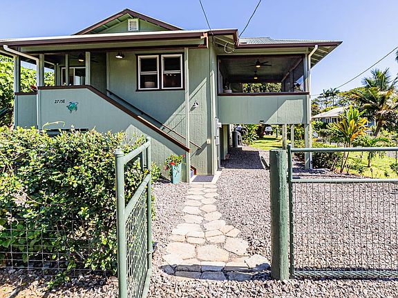 Among improvements added by the current owners are fixtures, kitchen upgrades, some appliances, a step-in shower, and screening in of the second story lanai (240 sq ft, with a partial ocean view of Hilo Bay and holiday fireworks in the distance). The yard has been completely fenced for the safety of furry family members, and an electric gate installed. New off-street parking for two (or more) vehicles has been added inside the fence. Landscaping has been improved and new fruit trees are starting to mature.