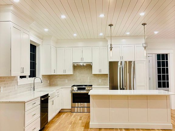 27 SEVENTH STREET NORTH, EDGARTOWN offers NEW CONSTRUCTION, with an anticipated completion date in MARCH of 2026; just in time to bring in the 2026 SPRING/SUMMER SEASON! The first floor entry offers an inviting two story foyer which opens to the living room which has a gas fireplace and wall of glass slider doors. Flowing from the living room is the open kitchen area which offers an island with seating for four. The kitchen sports Bosch appliances, an island with a built in drawer microwave, quartz countertops and an easy layout for cooking and entertaining. The kitchen then opens to a separate dining room. A half bath off the living room and a first floor primary bedroom with a luxurious private bath completes the first floor. The second floor offers a second living room and two guest bedrooms, each with their own bath. The plot is large enough to support a future pool, and a detached garage. Come and enjoy! The pictures are of a similar home that was built.