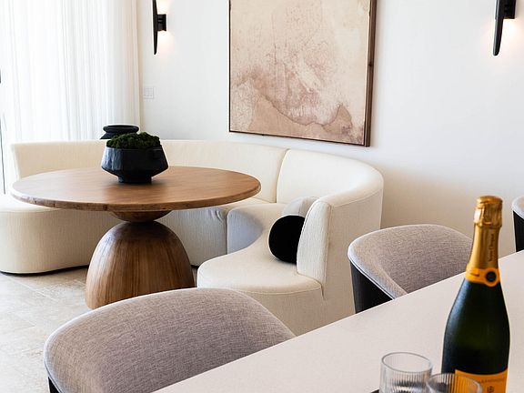 Discover Modern Luxury at The Della in Alys Beach. Experience the pinnacle of contemporary coastal living in this exquisitely designed Della condominium, where sophisticated minimalism meets beachside elegance. This stunning residence showcases a masterful blend of clean architectural lines, premium finishes, and thoughtfully curated design elements that create an atmosphere of refined tranquility. The open-concept living space flows seamlessly from the gourmet kitchen to the expansive living area, featuring soaring ceilings and floor-to-ceiling windows that flood the interior with natural light. Rich travertine flooring extends throughout, complemented by a sophisticated neutral palette of crisp whites and warm creams, accented with striking black elements and natural wood tones. The chef-inspired kitchen boasts sleek white cabinetry, premium stainless steel appliances, and a spacious island perfect for casual dining and entertaining. Contemporary pendant lighting and integrated design elements create a seamless transition between cooking and living spaces.Two beautifully appointed bedrooms offer serene retreats with designer lighting fixtures, and private balcony access. The master suite features a large walk-in closet, spa bathroom and glass doors that open to stunning outdoor views, while the second bedroom showcases artistic pendant lighting and sophisticated styling. Expansive balcony is accessible from multiple rooms provide the perfect setting for morning coffee or evening relaxation, with views that capture the essence of Alys Beach's natural beauty. The seamless indoor-outdoor flow enhances the coastal lifestyle experience. Located in the heart of one of Florida's most coveted beach communities, The Della offers residents an unmatched lifestyle just steps from pristine white sand beaches, world-class dining, and the unique architectural charm that defines Alys Beach. This is more than a residenceit's your gateway to sophisticated coastal living at its finest.