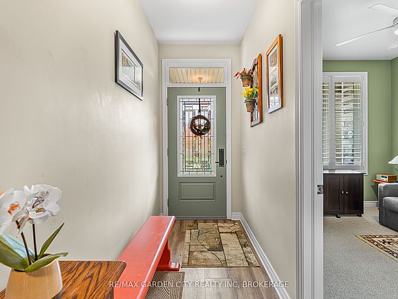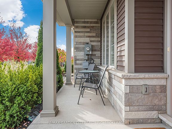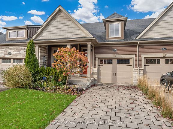 This quality built 3 Bedroom, 3 Bathroom BUNGALOW by Rinaldi affords added value over similar townhomes on market because of its upgrades, finishes and features. You are greeted by a large Porch, 13 ft. x 5 ft. From the Foyer, secondary Bedroom, Laundry Area, 4 piece Bathroom and Garage access at the front of the unit, a spacious hall leads to the open concept Kitchen with Eating Island, Dining area, and Living Room with gas Fireplace and mantel. Primary Bedroom, with 3 pc. ensuite Bathroom has a large Walk in closet .From the Living Room enter the 3 season Aztec Sunroom that leads out to a tastefully landscaped fenced backyard. The lower Rec Room, 3rd Bedroom, 3 pc. Bathroom and games area provides another 650 sq. ft. of finished living space .Some of the upgrades include deluxe flooring, sunshade blinds, California Shutters, Ceiling Fans and high end light fixtures. Fabulous Merritt Meadows this is not a Condo and has no hidden fees .Low utility costs .Water $72.79, Gas $61.64, Hydro $57.05 averages per month. Great location, close to everything with quick highway access. Priced to Sell, Don't miss out.