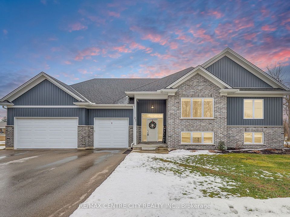 Built by Everest Estates Homes. Welcome to this stunning 5 bed, 2 1/2 bath home on a 0.56 acre lot in the fully serviced community of Vienna. Whether raising your family or retiring, you will enjoy a quiet side street among newer homes and siding to parkland, a six year old custom build with charming colours and attractive architectural details that combine curb appeal with modern functionality, set on a fully fenced yard with severance potential & exceptional outdoor privacy. The property features a heated three car garage with an extra overhead door to the backyard - perfect for a workshop or easy access for toys and equipment, new gutter guard (no eaves to clean),a Natural Gas Generac for reliable backup power and a 200 amp electrical service that provides ample capacity for a workshop and future EV charger, outdoor living is effortless with a covered deck complete with a natural gas BBQ hookup. Inside, the main floor is filled with natural light, custom blinds and offers an open concept living, dining and kitchen layout where the kitchen shines with upgraded cabinetry and drawers, a subway tile backsplash, and a composite double sink set into the island, the dining area has large windows with a view of the back yard, and has patio doors to the deck for seamless indoor outdoor entertaining. The main level also includes a huge primary suite with ensuite and walk in closet, two additional bedrooms (or home office) and a convenient 2 piece powder room combined with the laundry area, the lower level is bright with big windows and an open concept living and dining area anchored by a modern gas fireplace, plus 2 large bedrooms and a 3 piece bath, making the basement ideal for multi generational living or a potential in law suite. The home is super clean, move in ready, triple width driveway has room for 6 cars, has a landscaped lot with severance potential and the lot has an approximate value of $200,000. Book a tour, write your offer, and call it a day!