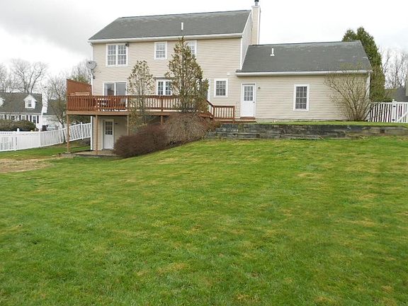 Impressive young colonial in perfect neighborhood setting! This beautiful home features a gorgeous sun drenched kitchen with loads of cabinet space plus a center island, large family room with stunning fireplace, elegant dining room with gleaming hardwood flooring, a formal living room, 3 large bedrooms all on the 2nd floor including a spectacular master bedroom suite with 2 walk-in closet, & huge bonus room in the walk-out finished basement! Well maintained with numerous updates too including new Corian counters, new kitchen tiled back-splash, furnace in '11, new A/C compressor, recent high efficiency hot water tank, new dishwasher, new tiled bathroom floors, some interior rooms freshly painted, & deck stained! Recessed lighting, interior fire protection sprinkler system, & radon system are some of the great features this home offers too! Relax on the large deck overlooking a beautiful fenced backyard & enjoy the views!
