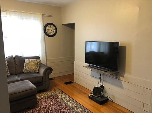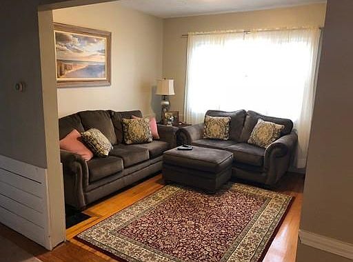 Bright and sunny first floor apartment in a two-family house. Recently renovated, freshly painted, refinished hardwood floors, updated stainless steel appliances and granite counter tops. Two generously sized bedrooms, plus office, eat-in kitchen that flows into the living room. Off-street driveway parking for 2 cars, washer/dryer and separate storage space located in basement. Great commuter location - Walking distance to commuter rail and bus line, minutes to 95 and 93.