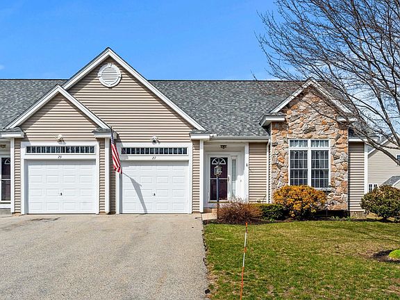 Welcome to Rowell Estates, an exclusive 55+ community nestled in Kingston, NH. This well maintained and spacious townhome features 2 bedrooms,2 bathrooms and 1575 sqft expanding 2 levels. The first level is home to the primary bedroom suite with walk-in closet, laundry area, open kitchen/dining area, impressive living room with vaulted ceilings, a cozy gas fireplace and walkout to the back deck patio. From the second floor balcony enter into the large guest bedroom with plenty of closet space, a second full bathroom, and an unfinished bonus room over the garage that could be finished and used as a home-office, studio or additional storage area. This unit is conveniently designed for easy first floor living, offers an abundance of natural light, a 1-car garage plus off-street paved driveway parking, central heat and AC, vaulted ceilings in the living room, a 1-year old furnace, high-end ceramic titled kitchen and a large open unfinished basement for additional storage or possible finished bonus space. Don't miss out on this low-maintenance and convenient lifestyle living. Only one occupant needs to be 55+, the HOA allows cats as well as dogs under 50 pounds.