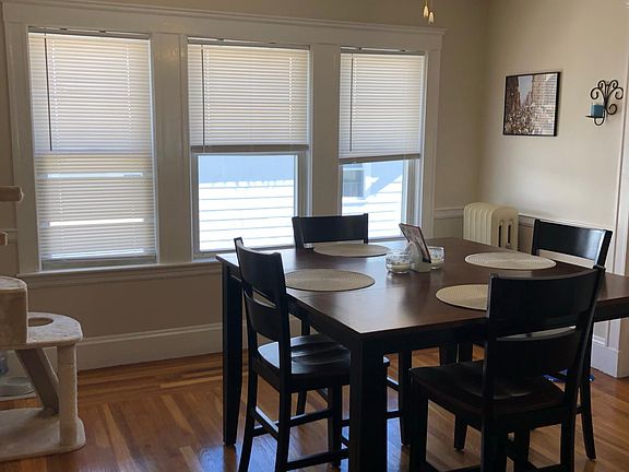 2 BED 1 BATH WITH HARDWOOD FLOORS ON TOP FLOOR WITH YOUR OWN ENTRANCE. 1 VERY LARGE BED WITH WALK IN CLOSET AND MEDIUM SIZED 2ND BED. KITCHEN FEATURES DISHWASHER, FRIDGE, STOVE. LIVING ROOM, DINING ROOM, AND FRONT PORCH. HAS PATIO AREA FOR USE. PLENTY OF STORAGE AND OWN WASHER/DRYER IN BASEMENT. CAT OK!. 1 BLOCK WALKING TO T-STOP (73) AND SHOPPING AND A SHORT WALK TO THE COMMUTER RAIL. *PLEASE NOTE- 2 CAR OFF STREET PARKING INCLUDED BUT WILL HAVE TO BE TANDEM WITH DOWNSTAIRS LANDLORD (LANDLORD ONLY HAS 1 CAR) AND WILL NEED TO COMMUNICATE WITH HIM REGULARLY FOR PARKING ARRANGEMENTS). A VIRTUAL TOUR RECORDING CAN BE SHARED PLEASE HAVE GOOD CREDIT! FIRST, SECURITY, AND REALTOR FEE REQUIRED. MUST HAVE GOOD CREDIT. TENANT PAYS OWN HEAT, ELECTRIC, AND WATER BILL (UNITS ARE SEPARATELY METERED)