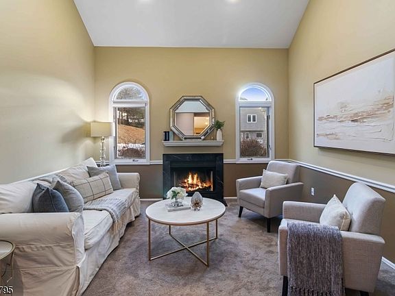 Elegance meets comfort in this move-in ready St. Andrews style end-unit townhouse, meticulously maintained and thoughtfully updated in one of the community's most private locations. Wood floors grace the foyer, family, and dining rooms, with wood also beneath the newer carpeting in the living room. Hallways and the primary suite feature brand new, high-end carpeting, newer custom blinds, while bathrooms have been updated with elegant fixtures and vanities.The Tuscany-style eat-in kitchen offers granite countertops, tumbled marble backsplash, crisp white cabinetry, and a sun-filled breakfast area opening to a deck with a permanent gas line perfect for outdoor entertaining. The living room impresses with vaulted ceilings, skylights, dramatic arched windows, and a wood-burning fireplace.The oversized family room opens to a second deck with serene wooded views. The dining room features vaulted ceilings and an inviting ambiance for gatherings.Upstairs, three spacious bedrooms include a luxurious primary suite with a dressing area, multiple closets including a walk-in, and an ensuite bath with jetted tub and separate shower.The finished walk-out lower level offers a recreation room, bedroom, office (also a bedroom), and space for an additional bath, all opening to a private, expansive grassy area. Convenient guest parking and access to Highlands at West Essex amenities including clubhouse,pool,tennis courts, & playground complete this rare blend of privacy, elegance,and lifestyle.