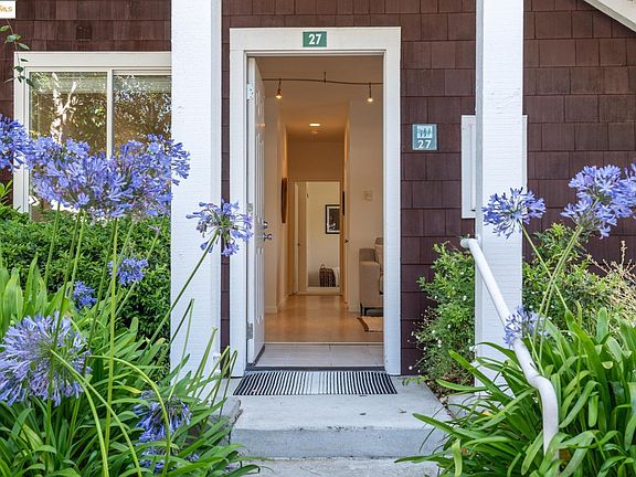 Everyone loves the condos at Marina Bay. Comfortable floor plans; reasonable HOA dues; a bay breeze on each private patio; tranquil, private, yet ideally situated in perfect proximity to the bridges, SF bay trail (just outside the complex!) and surrounding towns. But, 27 Bayside is special. There is just something about the way the sun bounces off the crinkling leaves encircling the patio, and illuminates the living room; the peace elicited by the sage green of the updated kitchen, which inspires new recipes you'll cook up, maybe a foray into sourdough, possibly a dinner party series. The warmth of the wood-look floors and the cozy bedrooms feel like you're already home. And the convenience is unmatched: storage; sizable, in-unit laundry room; and just three steps to the front door, so you'll come and go with utter ease, groceries can be carried in from your parking spot in just a few steps, and a jaunt to the pool and gym (only ~3.5 buildings away) is breezy. Additionally, rest easy knowing the complex is gated and secured. This is homeownership, with none of the headache – just comfort, ease, and turn key living in Marina Bay.