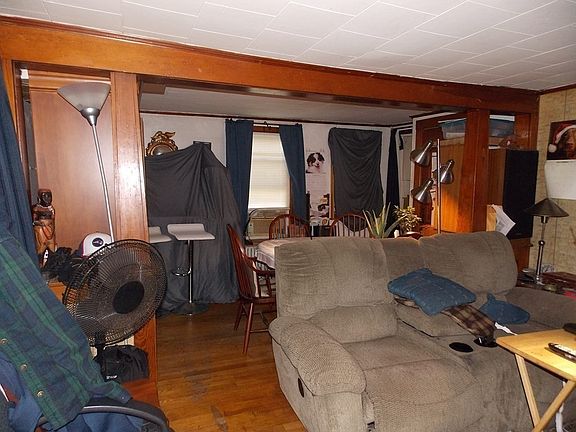 New Roof! This must see two family sits on a large level lot and offers privacy with separate entrances, yet is located within walking distance to the vibrant downtown area. Needs some work but features hardwood floors, separate utilities, town water & sewer, natural gas heat and plenty of natural light. First floor offers a well-laid out floor plan including kitchen with eat-in space, a living room/dining room with large windows, a well proportioned bedroom with ample closet space, a second good size bedroom, a full bath and a private front porch that brings you every evening breeze. Second level apartment has a large eat-in kitchen, living room, bedroom & full bath. Laundry for both units. Excellent investment and owner occupy option.