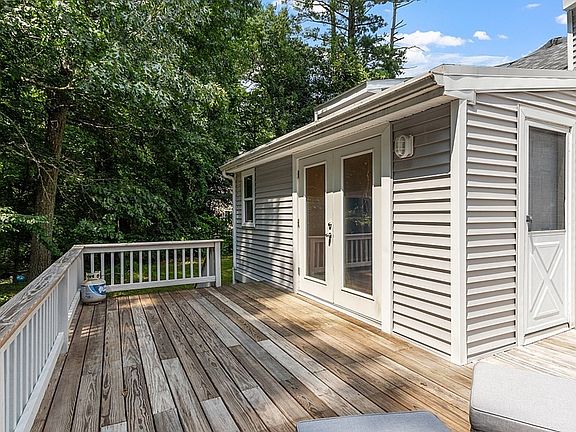 Situated on a private, wooded lot, you will love this beautiful two story home with access to Mascuppic Lake! Enjoy all lake life has to offer, including boating, swimming, sailing, and fishing! With over 1700 square feel, this light and bright home features hardwood flooring throughout, fresh paint, and an open concept perfect for entertaining! Living room features a Rumford fireplace, perfect for cozy fall evenings. You'll love the eat-in kitchen area, complete with stainless appliances, plenty of counter space, access to a separate laundry area and french doors that open to a wrap-around deck. An updated, full bathroom completes the main level. The second floor offers two bedrooms with a large primary bedroom complete with its own bathroom and amazing walk-in closet space. Recent updates include new ductless mini split systems, vinyl siding, some new windows, roof, and high-efficiency gas boiler. Located minutes to Route 3, easy to show, and quick closing possible!