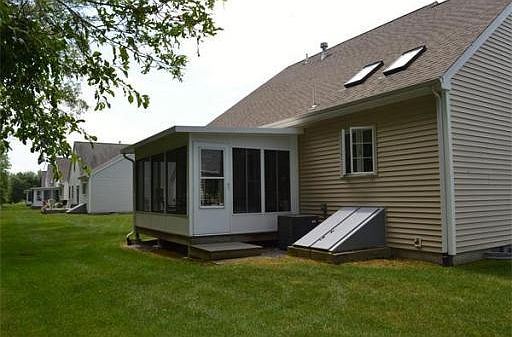 CENTER VILLAGE-ROCHESTER! Most reasonably priced condominium in the Tri-town Area! Freestanding detached home w/one car garage and a lawn that blends into community open space/greenery. Upgraded kitchen with a ton of natural light. Master suite on the main floor. Beautiful wood floors and Granite Gas Fire Place. One story living if desired! 2nd floor has finished Family room with 2 bedrooms and a full bath for the grandchildren or friends visiting.Oversized 3 season room is right off the open floor plan with a wooded back yard for privacy. Rights to Marion beach and waterfront. A great active adult 55+ community!