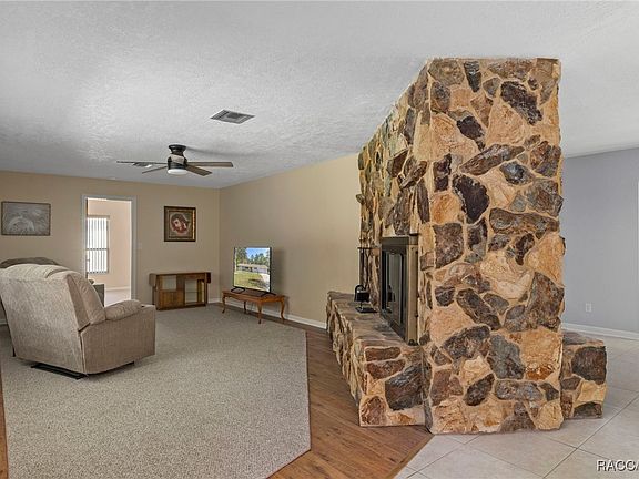 Welcome to Your Dream Home in Sugarmill Woods! This beautifully updated 2-bedroom, 2-bath home sits on a spacious .28-acre lot with lush, unbuildable greenbelt space behind it—offering privacy, tranquility, and natural beauty right outside your back door. Major upgrades make this home worry-free and energy efficient, including a New Roof (June 2024), New A/C (February 2024), New Hot Water Heater, New Landscaping, Attic electric ventilation system, Well-fed irrigation system, and Leaf Guard gutters. Step inside to find fresh interior updates, solid wood panel doors, and gorgeous wood and tile flooring throughout the main living areas, with cozy carpet in the bedrooms. The see-through wood burning fireplace adds warmth and charm, while the enclosed, air-conditioned lanai provides year-round comfort and additional living space. The spacious, updated kitchen features new soft-close cabinets, updated lighting, beautiful countertops, double pantry, and modern finishes great for cooking and entertaining. A built-in refreshment area makes the ideal spot for entertaining guests or creating your own personal coffee bar. The generous primary suite offers a huge walk-in closet and ensuite bath with a walk-in shower. The indoor laundry room adds convenience and includes a washer, dryer, and laundry tub. The rare oversized garage easily accommodates a 25 foot trailer and a 20 foot boat, offering exceptional flexibility and savings—no storage fees! Outside, enjoy your own grape arbor, lush with grapes—for winemaking or simply savoring your peaceful garden oasis. Relax on the back patio overlooking the serene greenbelt, surrounded by mature landscaping. With all major systems replaced and every detail refreshed, this home is truly move-inready. Don’t wait—schedule your showing today!