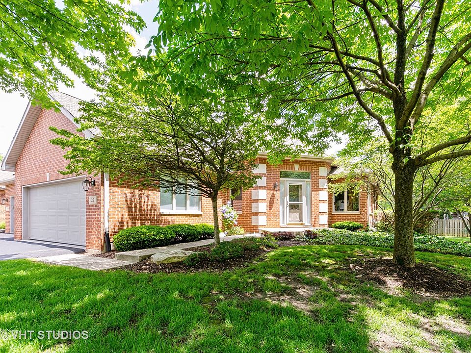Stunning Ranch townhome in a serene setting is upgraded and move in ready. Tastefully appointed with hardwood floors, white trim, soaring ceilings, and tons of windows adorned with custom blinds. Lovely living room boasts a beautiful gas fireplace, large dining area easily accomodates a china cabinet, and spacious kitchen has a huge island with seating, plus a walk in pantry! Ease of living with main floor mud/laundry room, and both bathrooms have a separate shower. Bonus wrap around deck to take in all the greenery. Full basement with big lookout windows gives enormous possibilities and already has roughed in plumbing for another bath. Quiet street tucked away by the lush golf course of Midlothian Country Club. This is a special home. Sold as is.