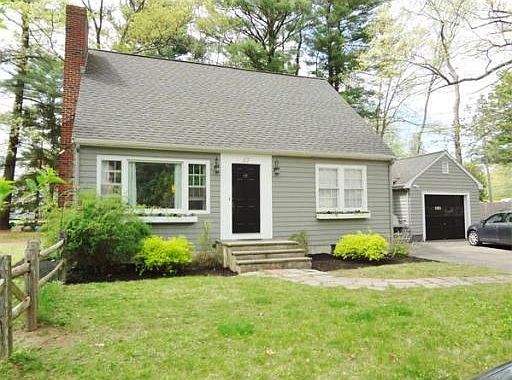 A wonderful cape on a large level lot. The first floor has a bright living room with a fantastic fireplace. The kitchen opens to the formal dining room. There is a study or bedroom on the first floor and a half bath. Off the kitchen is a heated breezeway that leads to the back door and a bluestone patio. The Second floor has three bedrooms with lots of built ins and the full bath, There is a finished basement with fireplace. Lots of updates including newer roof, hot water heater and furnace. Showings start at open house on Sunday 2-4