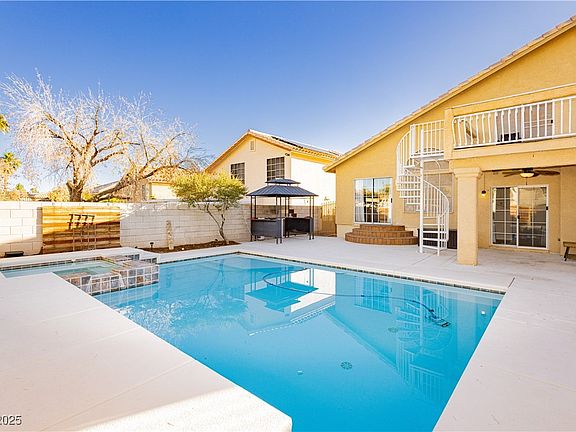 Beautifully updated Henderson home w/ a pool. This home is conveniently located near the 215 freeway near Green Valley Ranch w/ all the shopping and restaurants. It features an amazing backyard w/ pool and hot tub, balcony, owned solar panels, formal living room and dining, vaulted ceilings and a grand entrance, granite countertops in the kitchen, stainless steel appliances, and much more. A must see.