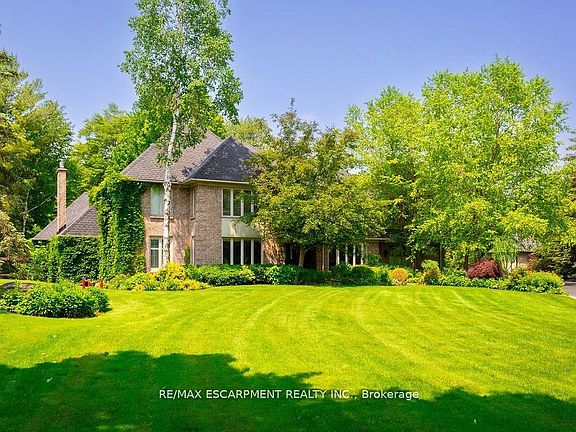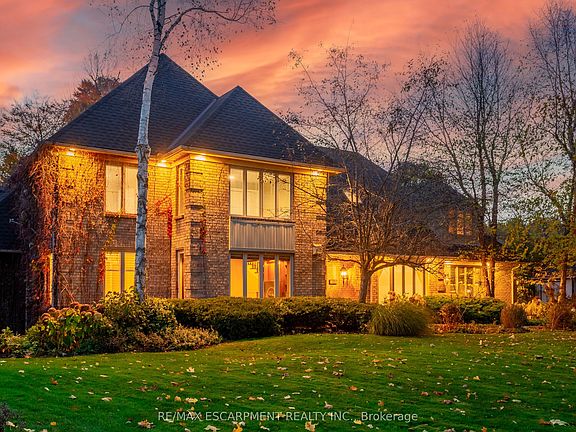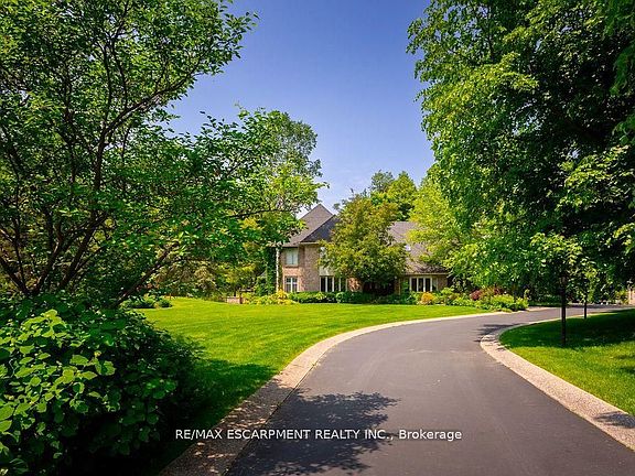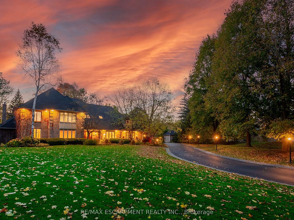 Welcome to 27 Blackberry Place a truly exceptional luxury estate nestled at the end of a prestigious cul-desac in the heart of Carlisle. Set on a sprawling and completely private 2.12-acre lot, this distinguished residence is enveloped by professionally landscaped grounds, featuring curated gardens and a winding driveway. This home offers over 7,791 sq ft, timeless design and modern refinement. The soaring two storey foyer welcomes you, flanked by a formal dining room perfect for hosting, richly appointed wood panelled library with gas fireplace. Light filled updated chefs kitchen with custom cabinetry, soft-close drawers, wood island, marble countertops, high-end appliances, and a generous breakfast room. A soaring great room with vaulted ceilings flows into an oversized sunroom offering panoramic views of the private backyard. Corner office on the main level provides a peaceful work-from-home retreat. The upper level offers a secondary library or office leading into the luxurious primary suite with a spa-inspired ensuite featuring a soaker tub, rain shower, and an expansive dressing room. Three additional spacious bedrooms and 5-piece bathroom complete the second level. The fully finished lower level is an entertainers haven and ideal for multigenerational living or nanny, featuring a private entrance, large recreation and games rooms with built-ins and a gas fireplace, a wet bar with ambient lighting and beverage fridge, a guest bedroom, spa-style bathroom with heated floors, and three oversized storage rooms. Step into the backyard and experience resort-style living. Saltwater gunite pool with cascading rock waterfall, hot tub, expansive deck with pergola, raised vegetable gardens and charming gazebo surrounded by mature trees and lush privacy and acreage. Additional features include an oversized 3 car garage with EV charging capabilities, new furnace (2024), new AC (2024), roof (2019), most appliances (2024). LUXURY CERTIFIED.