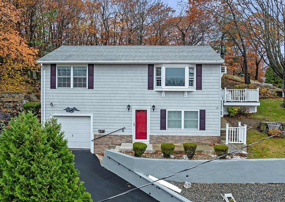 Nestled on a quiet dead-end street in sought-after Pine Hill, this well-maintained Raised Ranch is a true find. The first level offers a comfortable bedroom, three-quarter bath, cedar closet, laundry & ample storage. Upstairs, a bright living room with a bay window fills the space with natural light & flows easily into the eat-in kitchen. From there, step outside to a spacious deck that extends your living space and overlooks a tranquil backyard abutting the woods - ideal for relaxing or entertaining. Down the hall, you’ll find two additional bedrooms with new carpet and a full bath. Freshly painted throughout, this home features maintenance-free vinyl siding, a convenient attached garage & a newly sealed driveway. With easy access to Route 1 & 95, Lynn Woods Reservation, Frey and Gallagher Parks, Lynn's vibrant dining options & the commuter rail just 1.5 miles away, this home offers comfort, convenience & a setting you’ll love coming home to.