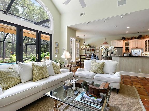 Fabulous Spanish Wells oasis on an estate sized lot! Without a doubt one of the nicest homes on Hilton Head under 1 million dollars. Wide open living spaces overlooking a screened atrium pool & spa area, plenty of sun but covered areas too and no bugs. Features include: 5 bedrooms 4 & 1/2 baths, 2 family rooms, formal living room, dining room, eat-in kitchen, fireplace, Mexican tile floors, golf cart garage and more! The bedroom separation and 2 separate living areas make for an ideal in-law living situation or a large family to spread out and relax. Convenient to community pool, dock and private club offering golf & tennis with memberships available.
