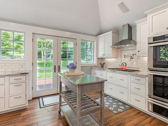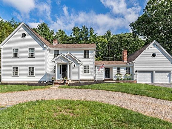 Location! Location! This beautifully renovated, 4-bedroom Farmhouse has it all... Gorgeous custom details, amazing charm and incredible yard with direct access to miles of trails in the Trustees of Reservations, Noanet Woodlands. Sun filled open floor plan with a seamless flow offers family entertaining inside and out. Front to back kitchen with walk-in pantry, built-in hutch and breakfast room steps outside to large deck overlooking the spacious level backyard. 3 fireplaces adorn the quintessential dining room, open living room with built-ins & cathedral beamed ceiling, & large coffered family room w/ outdoor access. First floor bedroom w/ adjacent full bath and 2nd stairway to bonus/playroom offers flexibility. 2nd floor features a stunning master with balcony, double sinks, shower & soaking tub, 2 additional bedrooms with gorgeous family bathroom and laundry. Incredible opportunity to take advantage of Dover's #1 schools, convenient location and trails. Move-in ready, a must see!