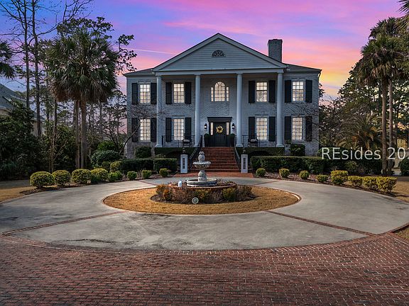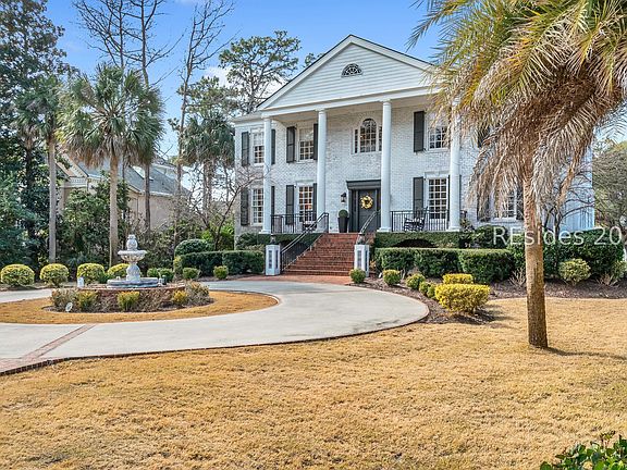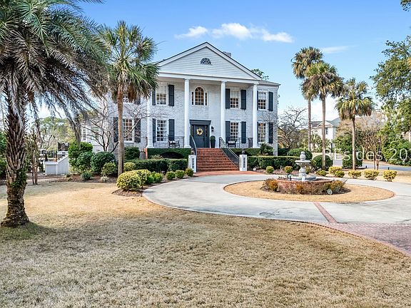 Set on one of Wexford's most desirable corner lots, 27 Bridgetown Road impresses immediately as the front doors open to a grand foyer featuring a dramatic bifurcated staircase that defines the home's scale, symmetry & elegance. This Brick Waterfront Residence offers luxurious everyday living with open, light-filled interiors & exceptional spaces for entertaining indoors & out, designed for comfort, & effortless flow. A stunning conservatory anchors the main living areas, where walls of windows frame long harbor views & shifting coastal light, while a three-stop elevator provides access throughout the home. The upper level features a spacious primary suite as a private retreat with multiple walk-in closets & a beautifully appointed spa-style bath, complemented by three additional en-suite guest bedrooms offering comfort, privacy & flexibility for family & visitors. Extensive, high-level renovations reflect a substantial investment in quality & design, including new HVAC systems & ductwork, updated electrical & plumbing, spray foam insulation, new flooring, lighting & fixtures, a redesigned chef's kitchen, luxury baths, upgraded windows & doors, integrated technology, & major exterior enhancements, all supported by full & detailed renovation lists available for review. Outdoor living is a defining highlight, with walls of glass opening to a sun-saturated terrace where the pool serves as the focal point, enhanced by a south-facing orientation that delivers uninterrupted sunlight throughout the day for entertaining or quiet relaxation by the water. A 129-foot deep-water bulkhead accommodates vessels up to approximately 70 feet, offering a rare yachting opportunity on Hilton Head Island, while views extend to Wexford's iconic Irish bridge. Established in 1983 & envisioned by renowned planner Willard Byrd as the East Coast's premier residential harbor, Wexford features a lock-controlled marina system that maintains consistent water levels & provides protected access to the Intracoastal Waterway, one of only a limited number of such residential systems along the East Coast. Recognized as one of Hilton Head Island's premier luxury communities, Wexford offers gated living with a private marina, championship golf, tennis & pickleball, dining, & an active social calendar, ideally located near beaches, shopping, & miles of leisure paths.