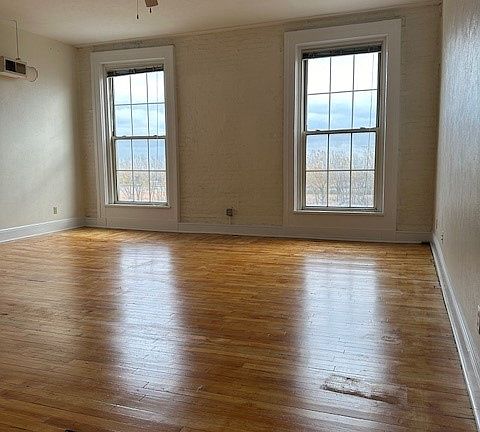 The apartment is in a prime downtown location, with large windows that offer expansive views of the cityscape, including a glimpse of the Maumee River. Upon entering the apartment, you're greeted by an open-concept living area that maximizes space and natural light. A modern kitchen opens up into the living space and is equipped with stainless steel appliances, including a gas stove, dishwasher, and refrigerator. The kitchen island doubles as both a breakfast bar and additional counter space for prepping meals. The apartment features high ceilings with central heating and cooling make the space comfortable year-round, and washer and dryer are tucked into a small closet off the hallway, providing convenience. Living above a restaurant and brewery means access to great food and craft beer just steps away. The brewery offers a rotating selection of local beers, with the restaurant downstairs. This space is perfect for anyone who loves the energy of city living but enjoys the comforts of a thoughtfully designed, modern apartment. It combines convenience, style, and a real sense of community in the heart of downtown Toledo. 1 year lease: Electric and water included Tenant pays gas $55 pet fee
