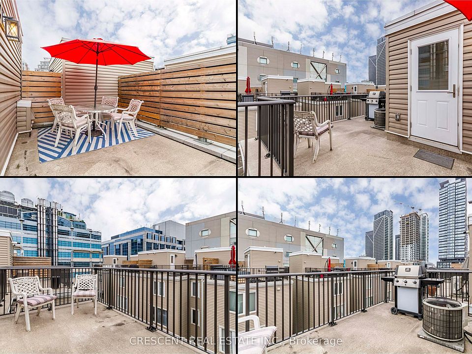 Welcome to your dream urban retreat in the heart of downtown Toronto - this stylish 2-storey corner-unit condo townhouse is the epitome of a gem in the downtown core. Boasting 2 spacious beds & 2 bathrooms, this sun-drenched corner unit is flooded w/natural light, creating a warm & inviting space you'll love coming home to. Stay cozy all year long w/central AC & heating. The functional open-concept layout includes a kitchen equipped w/appliances (including a dishwasher), ideal for cooking up your favourite meals. Enjoy the convenience of in-unit W&D, making daily chores a breeze. Step outside to your own private outdoor oasis: a sprawling 251sqft roof-top terrace balcony perfect for BBQs, morning coffee, or evening unwinding under the stars. This home comes complete w/underground parking, a private locker & secure bike storage - everything you need for a streamlined, urban lifestyle. Convenience is king, located right on vibrant King St W, w/the King St TTC transit line just steps away. Explore the best of Toronto w/easy access to Lake Shore Blvd & the scenic shores of Lake Ontario. Spend weekends lounging at Trinity Bellwoods Park, catching events at Exhibition Place, enjoying the thrills of Ontario Place, or taking in concerts at Budweiser Stage, all just minutes from your front door. Surrounded by charming neighbourhood parkettes, world-class dining, trendy cafes, upscale shops & endless entertainment options, this townhouse delivers the ultimate in downtown living. Whether you're a young professional, couple, or savvy investor, this property blends comfort, style & location in one of Toronto's most desirable districts. With quick access to the Gardiner Expressway & all forms of TTC transit including buses, streetcars & subways, your daily commute or weekend adventure is always within reach. Don't miss your chance to live in a space that truly defines urban oasis & step into the city lifestyle you've been dreaming of.