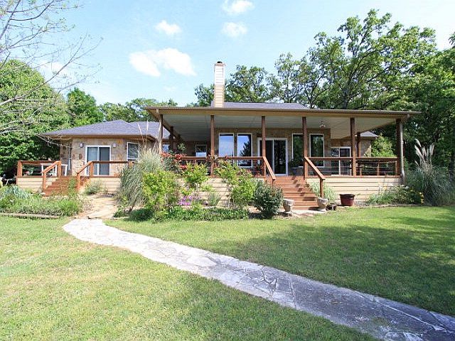 Private, peaceful retreat on over an acre w-205 feet of waterfront & low maintenance landscaping. Gorgeous home w-tall pine ceilings, stained concrete floors, stone WBFP. Large covered wrap around deck overlooking wide cove. Big kitchen w-granite, SS appliances & pull out drawers for easy storage. Baths w-vessel sinks, Jacuzzi toilets & marble surround shower. Three bedrooms + office. Energy efficient Low E windows, double insulated walls.