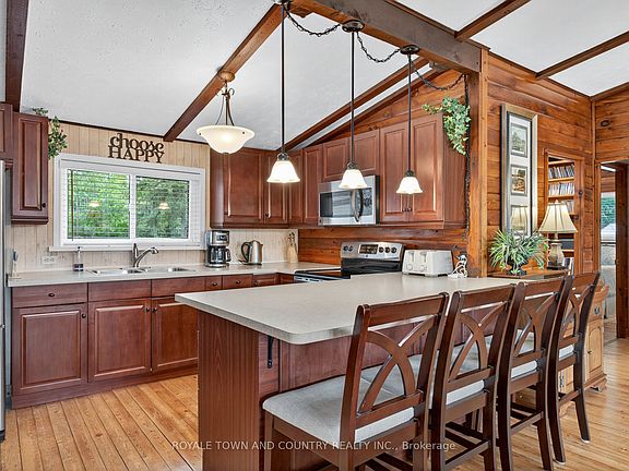 Welcome Home Live ,Where Others Vacation! Nestled along the Burnt River, this four-season home invites you to experience everyday comfort with a vacation-like feel. Featuring three bedrooms, an open-concept living, dining, and kitchen area, plus the cozy warmth of wood finishes throughout, this home radiates charm and relaxation. Enjoy the natural light in your sunroom, or step out to the expansive deck overlooking the water. Two versatile Bunkies offer bonus space ,one overlooking the water for guests, the other ready to adapt to your needs. With high-speed fibre optic internet, the property also provides the versatility to comfortably work from home while enjoying cottage life. At the shoreline, a stunning new retaining wall frames the waterfront beautifully, complete with a dock that accommodates two large boats. After a day on the water, gather with friends and family around the landscaped fire pit, the perfect setting for starlit evenings and cozy conversations. Set on a very large lot, the property also includes a two-car detached garage and comes fully furnished and tastefully decorated, so you can move right in. Burnt River is part of the renowned Trent-Severn Waterway, offering endless miles of boating, fishing, and exploration. Just minutes to all amenities, this property gives you the rare opportunity to live where people vacation.