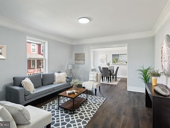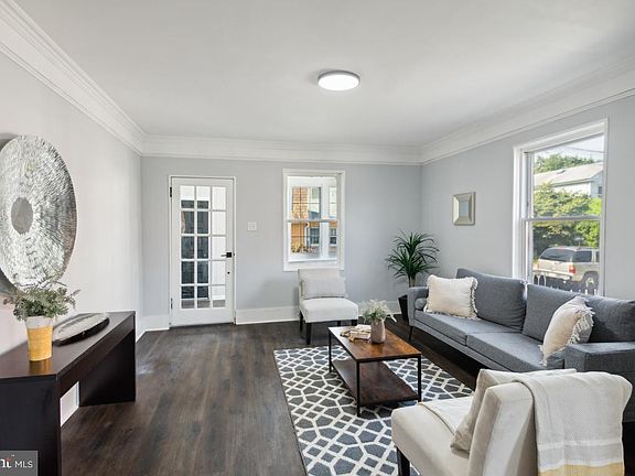 Surprisingly Spacious! Looks can be deceiving in this beautifully updated 3 bed, 2 full bath home. Bright and sunny enclosed front porch entry with 10 double hung windows and waterproof vinyl plank flooring that flows throughout the main level. Spacious living room with crown molding opens up to the lovely dining room with built-in cabinetry that surrounds the walk in bay. Open pass through to the gorgeous kitchen featuring all new white cabinetry with soft close doors and drawers, lazy susan corner cabinet, gold hardware, quartz countertops, white subway tile backsplash, stainless undermount sink with gold goose neck faucet, all new stainless Frigidaire dishwasher, microwave and range plus a fantastic island offering additional cabinet storage. Two bedrooms on the main level, both with double closets and easy access to the remodeled hallway bath. A small mudroom with full view French door to the back yard completes this level. Upstairs find a huge primary suite featuring a 25 x 17 bedroom, a 25 x 7 walk in closet, a 12 x 9 sitting room/office plus another 12 x 8 walk-in, all with new carpeting! Updated 14 x 7 primary bath offers a 48" white vanity, black Moen faucet, new light, mirror, toilet, vinyl flooring and shower. Additional features include new roof, fresh paint throughout, six panel doors, back yard gazebo and a very large 40 x 24 basement. Great location close to shopping, restaurants and major roadways for an easy commute. Easy to show!
