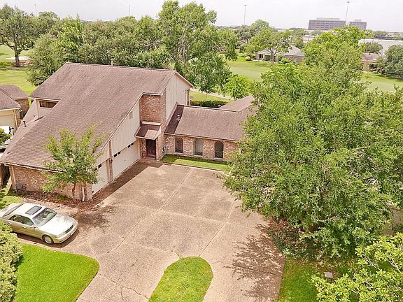Rehab or build new? Remodel for under 1mm, or tear down and be in under 2mm. This 13000 sqft Pie Shaped lot with panoramic view sits on Sugar Creek's Robert Hole #1. A Quiet Cul de Sac location, close to the Country Club. The Building: 3800+- sq ft. 1st floor: Two Bedrooms including Primary. Two and a half baths. Two living areas, Formal Dining and Large Formal Living with Vaulted ceiling, Wet Bar and half bath, Cozy Den off Kitchen, Views to the back pool and golf course, covered patio area along the back. Upstairs: Two bedrooms with Jack-n-Jill bath. These upper bedrooms have access to covered patio/deck at rear facing Golf course. Spiral staircase down to pool area. Game room, plus converted storage now used as an office. The county sqft may not include this area of approx 12'x15'. Outside in back: Golf course view, pool with spa, & covered areas. Outside in Front: two entries, huge driveway ez care front yard, 3 car garage! Can You make this your dream house?