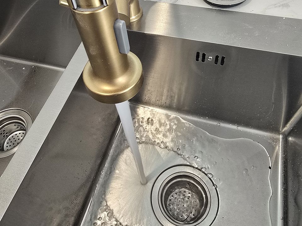 Brushed gold hardwareStainless appliancesPrivate bathsShaker white cabinetsIn-unit washer and dryer