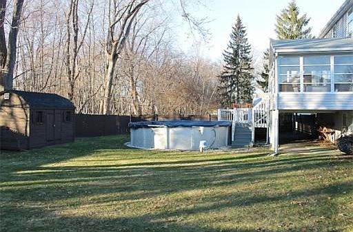 Pristine over-sized Garrison Colonial home on dead end street in great neighborhood! This home has been lovingly maintained by same family for 50+ years and is in move in condition. First floor offers eat in kitchen, dining room, large living room with cozy fireplace, half bath and beautiful four season sun room. Walk upstairs to four large bedrooms and full bath plus pull down attic for additional storage space. Enjoy relaxing on your private deck overlooking sparkling above ground pool. Just beyond your private yard you are steps away from fantastic walking/biking trail for those days you may want to get some exercise or just enjoy the outdoors. Boiler and hot water heater are only 4 years old. Beautiful hard wood flooring throughout and family room in lower level offers walk out to yard. Off-street parking in two driveways and easy access to major highways, shopping & restaurants complete this special home!