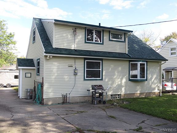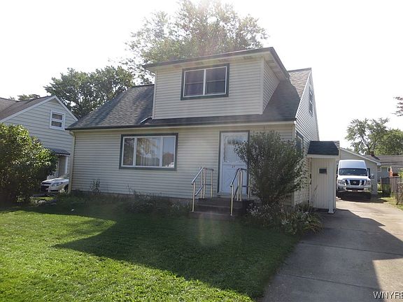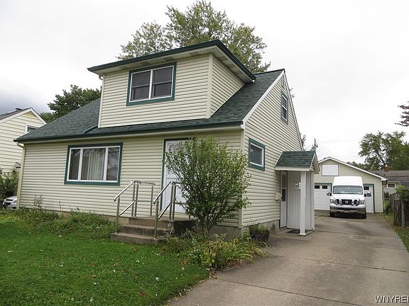 Easy lockbox showings. Before you buy anything check this large, 4 bedroom, 1.5 bath, dormered Colonial Cape. (1 brm & full bath on first floor). Large 2 car garage with additional carport to the side. Vinyl sided. New electrical service line (8/23). HWT (11/20), Sump pump, drains, back flow & line to the street (8/21), Roof (tear off) approx. 3 yrs. All this in a great location. Walk to schools, Niawanda Park & Niagara River. Showings begin Friday, Oct 13th.. Offers, if any, will be reviewed THURSDAY, Oct. 19th at 1:00pm.