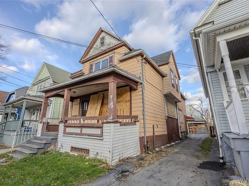 This is the perfect house for your winter project. This is a large four bedroom home with a garage on Buffalos Eastside. There is al living room, dining room, kitchen, four bedrooms, one and a half bathrooms. The roof is in good shape and the electric service is on. With some sweat equity this could make a great rental property, flip or your next place to call home.
