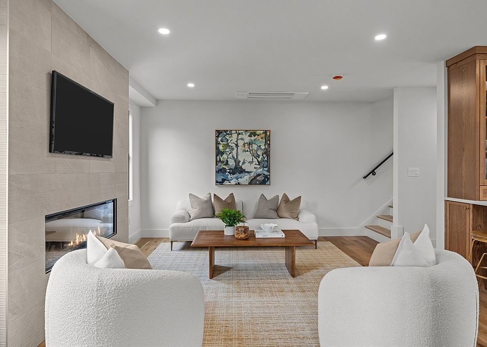 Thoughtful new construction on a picturesque tree lined street that is just walking distance to all Arlington has to offer. This brand new sophisticated 4 bed 2.5 bath has "I'm finally home" written all over it! The main level offers a spacious sun filled living and dining area with wide plank hardwood flooring and black interior Pella windows. The designer kitchen showcases a 36" Bertazzoni range with custom hood, custom glass cabinetry and gorgeous waterfall quartz countertops. Head down to the lower level and you will be greeted with a generous family/bonus room with plenty of room for large gatherings. The 2nd level delivers 3 spacious bedrooms with a shared bath and laundry. Upstairs is its own exclusive primary sanctuary. Enjoy morning coffee on the private deck before escaping to your double vanity ensuite bath with oversized walk in shower. Additional features include: Private yard, 2 off-street parking spots and radiant heat floors in bathrooms. This is Arlington at its best!