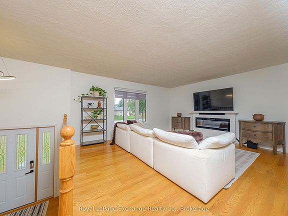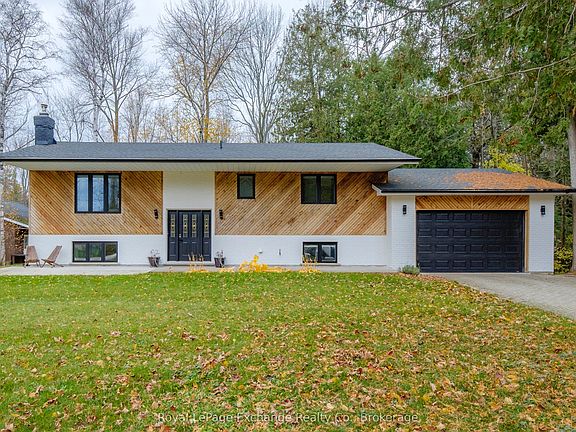Nestled on a beautifully landscaped half-acre lot, this tastefully updated raised bungalow offers a wonderful mix of comfort, functionality, and charm. Ideally situated just minutes from town and a short walk to a quiet sandy beach north of Kincardine, and steps from the KIPP trail, this home provides peaceful rural living with the convenience of nearby amenities. Inside, the bright and inviting main level features a spacious living area filled with natural light, an updated kitchen and dining space, three comfortable bedrooms, and a modern full bathroom. The lower level offers versatility with a large family room with a wood burning fireplace, an additional bedroom/office, a second full bathroom, and dedicated storage and laundry areas-perfect for guests or extended family. This property is well equipped with natural gas forced air heating and central air conditioning for year-round comfort. The outside is equally impressive, offering both an attached 20' x 25' garage and a detached 20' x 20' garage, two large driveways for ample parking, and a well-treed lot that provides excellent privacy.With its generous space, thoughtful updates, and ideal proximity to the lake, this charming home captures the essence of relaxed rural "cottage country" living while staying close to everything Kincardine has to offer.