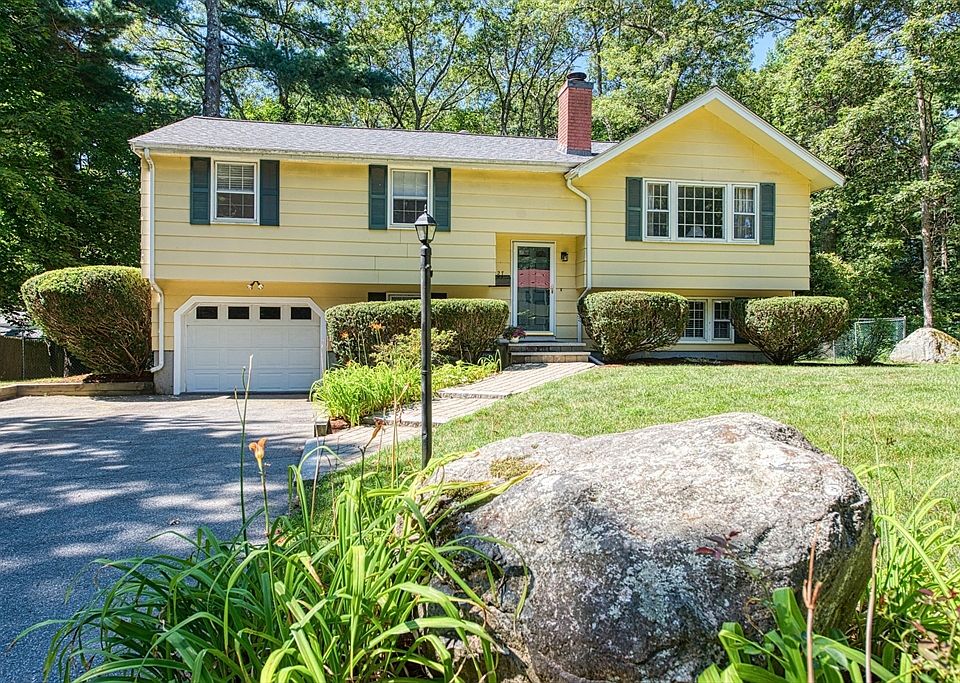 Welcome to 27 Dunbar Street, a lovely move-in ready 3-bedroom, 2 bath home in an unbeatable center-of-town neighborhood. Set on a peaceful side street just minutes from Sharon town center, top rated schools, commuter rail station to Boston and Providence, Lake Massapoag community beach, houses of worship and new library, this home offers the perfect combination of space, style, and convenience. Enter into the bright and sunny fireplaced living room opening to an adjoining dining room and updated eat in kitchen with skylight and newer appliances including GAS stove, dishwasher and fridge. Other first floor features include primary bedroom and 2 additional bedrooms with renovated full bath. The FULLY finished lower level includes a spacious family/TV room, a guest/bonus/exercise room PLUS an in-home office, full bath, laundry room and access to 1-car garage. Exterior features include upper level deck overlooking a brick patio and beautiful fenced-in back yard. Nothing to do but move in.