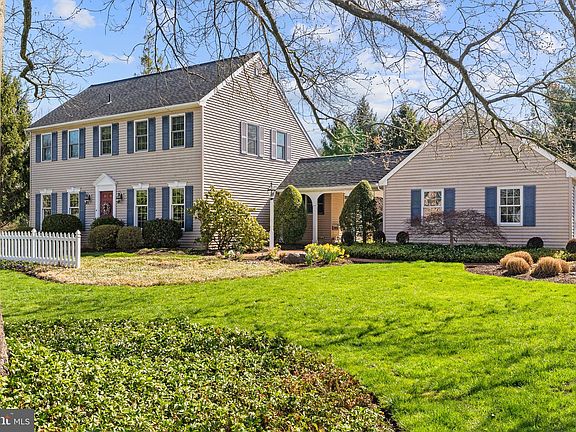 Nestled in the desirable community of River Knoll is this wonderfully maintained and thoughtfully appointed salt box colonial. Live your dream of homeownership in desirable Upper Makefield Twp with this exceptional home that exudes warmth and charm all beginning with the fantastic curb appeal. Enjoy beautiful gardens, manicured lawn and a storybook white picket fence as you approach the main entry. Once inside, this center hall colonial will not disappoint. Rich hardwoods greet you and span into both the formal living room and the formal dining room allowing them to be fantastic spaces to entertain. The Charles Weiler kitchen is a delight and emphasizes the Bucks County aesthetic with gorgeous soapstone counters, mercer tile backsplash, and farmhouse style custom cabinetry. The sunlit breakfast area is a pleasant space to enjoy a meal, a morning cup of coffee or admire the beauty of nature as the songbirds delight in the pollinator garden. The family room expands across the back of the home and showcases a cozy gas fireplace and wall of windows with a sliding Pella door out to the brick patio. The upper-level hosts 3 bedrooms including the primary suite with a large walk-in closet and newly updated bath featuring a frameless shower and crisp, neutral palette. The hall bath is equally beautiful and recently renovated making it a pleasant space for family or guests. The lower level is partially finished and offers fantastic storage and unlimited potential for all your needs including a gym, play space and more! Additional amenities include an amazing yard great for outdoor fun, invisible pet fence, Newer carpet, 3 car garage with remarkable storage and separate staircase leading to an expansive unfinished space, Newer Andersen windows, ceiling fans in all bedrooms, and irrigation system in the lawn and garden. Situated in historic Washington Crossing, this home offers easy access to the scenic Delaware River, Washington Crossing State Park, and nearby towns like Newtown, New Hope, and Yardley for shopping and dining. Located within the highly regarded Council Rock School District and convenient for commuting to Princeton, Philadelphia, or New York City. Meticulously maintained and ready to be enjoyed!