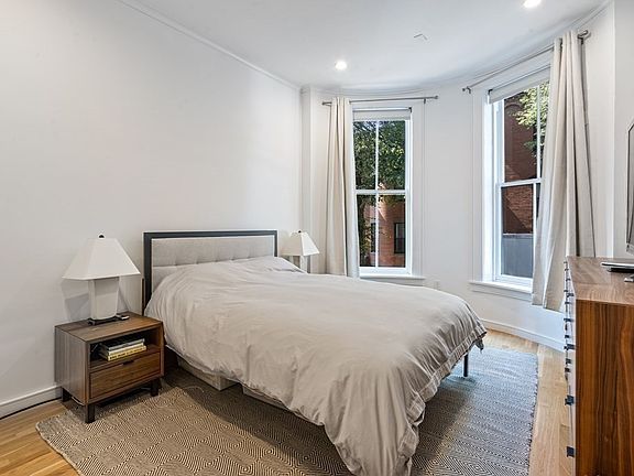 Beautiful 2 bed PLUS OFFICE, 2 bath in the South End's sought-after Eight Streets neighborhood. This rare parlor/second-floor home is only 1 flight from the sidewalk & offers 10FT+ ceilings. The chef's kitchen features quartz countertops, a peninsula with seating for 4, stainless steel appliances, and Liehber refrigerator. Floor-to-ceiling sliding doors open to a double-wide private deck plumbed with gas, water & electricity that overlooks the Berkeley Gardens. Perfect for grilling, relaxing, morning coffee, or entertaining! King size primary bed features custom walk-in closet, en-suite bath with step-in shower & storage space. Private entrance, central A/C, in-unit laundry, hardwood floors and wired security camera with Ring doorbell complete this home. Enjoy excellent proximity to Restaurant Row, the playground and dog park at Peters Park, Ringgold Park, Copley Square, SOWA, commuter trains and all that the South End has to offer.