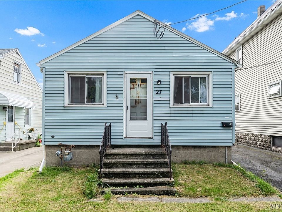 Welcome to 27 Dwyer! This cozy 2 bedroom 1 bath ranch features a quiet and convenient location just off of Indian Church Rd. Entering through the front door you are greeted with a spacious and open living room. The living room is connected to the large kitchen through a pass-through. An efficient floor plan has a full bathroom and two bedrooms just down the hall. Located a few steps down from the kitchen is the driveway side door and access to the full basement. The basement features an updated 150 amp service electrical (2023), a newer furnace along with washer and dryer hookups. The property features a large yard, 1.5 car garage and roof that was replaced in 2023. A large 1.5 car garage completes this property. Rehab to the property is needed but comparable, renovated sales have sold for over $200K+ and make this worthwhile to renovate and live or resell. Showings start immediately!