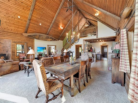 Modern vintage cabin with a glorious view of the Rio Grande National Forest & Conejos River! Taking full advantage of the view, this home with wrap around deck is perfectly perched on a hillside. The front portion of the lot is flat & very usable for picnics, parking & horseshoe pits! Step into this well designed cabin featuring designer touches throughout! Some special touches and features include a wooden canoe hanging from the vaulted tongue & groove great room ceiling, vintage style wood doors & knobs, antique dresser vanities, quartz countertops, stainless appliances, custom cabinet pulls, separate laundry mud room, covered & uncovered decks, plenty of garage/shop space for that mechanic or craftsman, and a favorite for the current owner is the 6 foot + stand up insulated storage below the entire home with a door to bring things in and out from the exterior or inside the home! Meticulously maintained and charming as can be, it will be tough to step in and not fall in love. Open floorpan with spacious bedroom/loft area over looking the great room and an impressive wall of windows showcasing the exterior scenery. The primary suite has glass french doors so it opens up nicely to the great room, but it also has sound deadening drapes when it is time to settle in and get some quiet time. Exquisitely furnished making it easy to use as soon as you close! The location in the neighborhood is great! Easy access from Hwy 17 right through the gate, short walk to the river and convenient to the neighborhood amenities/ service area. The Conejos Canyon is a magical place with so many outdoor opportunities and laid back lifestyle which is the perfect combination for making forever memories! For those that have to stay connected, no worries, there is now fiber optic high speed internet at the cabin. Don't wait! Cabins with design, quality, views and location like this do not become available everyday.